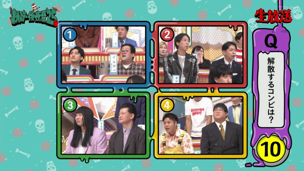 生放送中に「今日をもって解散するコンビは?」というクイズが出題され、選択肢の中にコンピューター宇宙が。